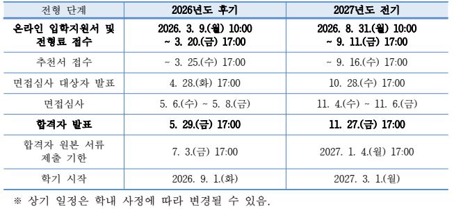 한국학중앙연구원 한국학대학원에서 2026년도 후기 및 2027년도 전기 특별전형 신입생을 다음과 같이 모집합니다.