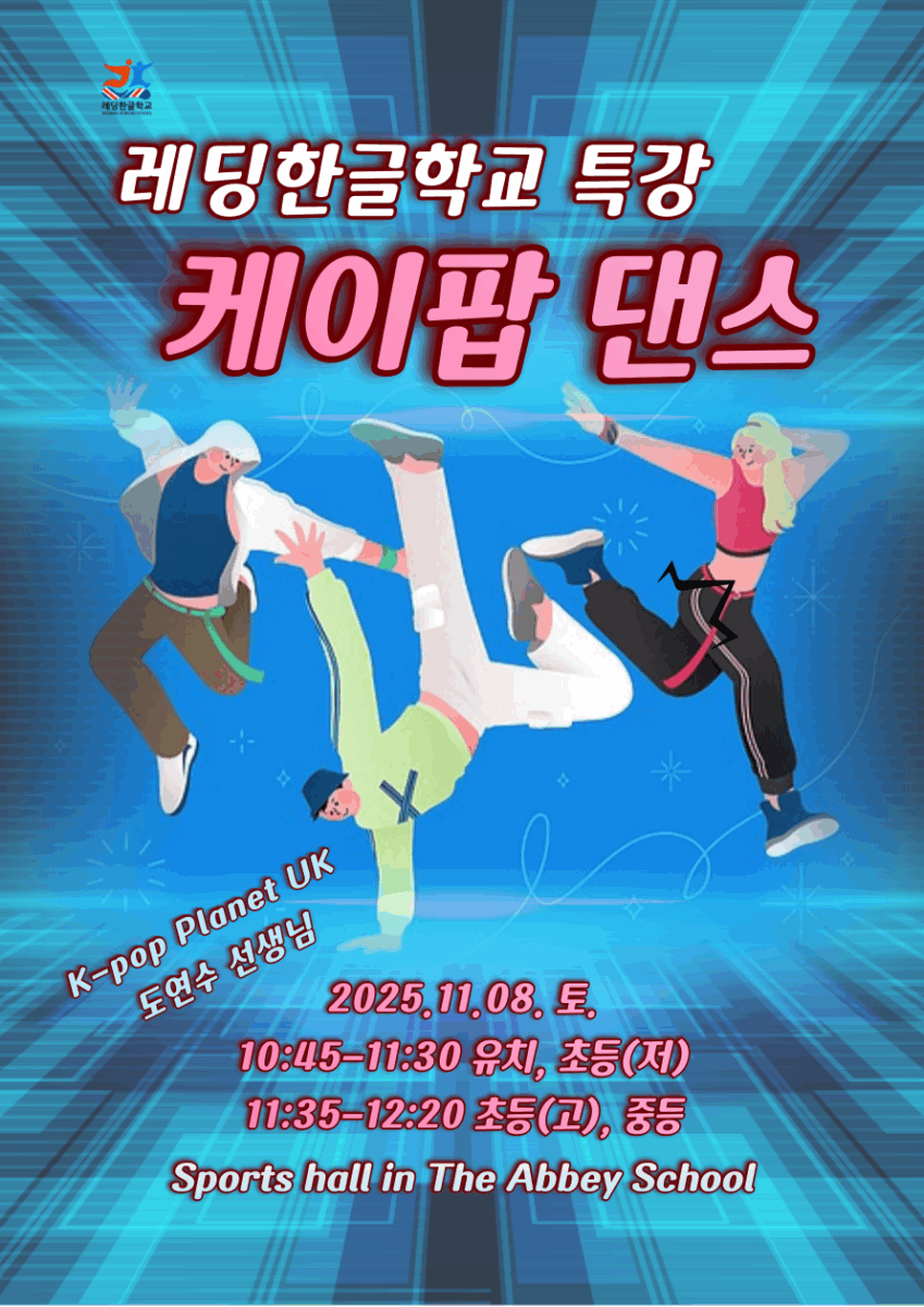 최근 케이팝이 영국을 비롯한 전 세계에서 폭발적으로 큰 인기를 얻고 있는 가운데, 한글학교 친구들의 케이팝에 대한 관심도 함께 높아지고 있습니다. 이에 발맞추어 레딩 한글학교에서는 도연수 선생님(케이팝 플래넷 스튜디오)과 함께하는 댄스 특강을 준비했습니다.