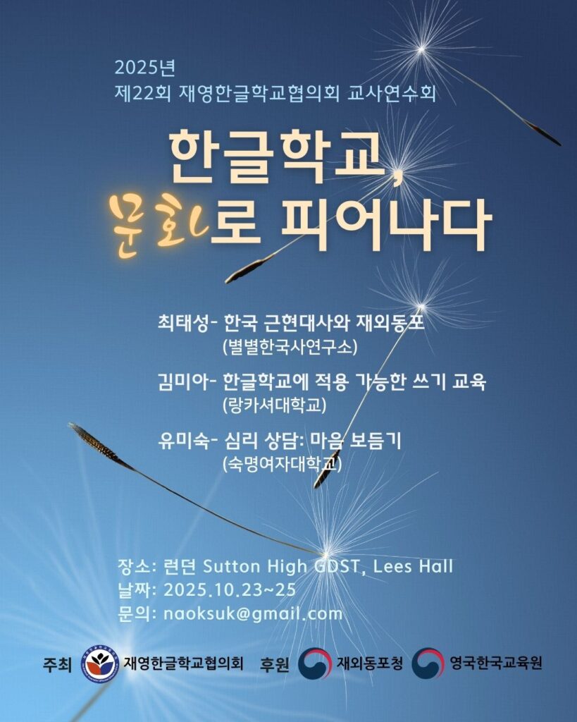영국한국교육원에서 전하는 공지사항입니다. 2025년 제22회 재영한글학교협의회 교사연수회 Author 영국한국교육원 Date 15:59 22 Sep 2025 Views 686 List Prev Next Powered by KBoard