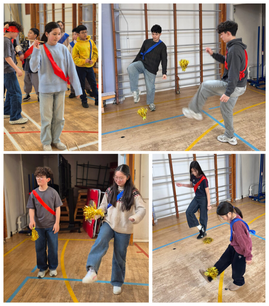 열 띤 전통놀이 경기가 끝난 뒤에는 전교생이 함께 ‘무궁화꽃이 피었습니다’를 했습니다. 영희 역할을 맡은 선생님의 “무궁화꽃이 피었습니다~”라는 구령이 울려 퍼지면, 달리던 아이들이 순식간에 석고상처럼 멈춰 서는 장면은 한국 어느 동네에서나 볼 수 있는 익숙한 풍경이었어요. 레딩한글학교 학생들 역시 오늘의 설날 문화 수업을 신나고 즐거운 기억으로 간직하겠지요? 한껏 뛰어놀고 난 아이들의 손에는 떡국떡과 한국 과자, 과일 퓨레가 가득 들려 있었습니다. 설날답게 넉넉하고 흥이 넘치는 하루였습니다.